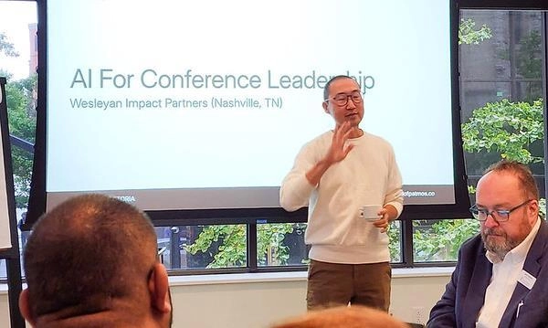 During a recent gathering of the Conference Leaders cohort in Nashville, participants engaged in a session with James Kang, Co-founder of PASTORIA and member of the Phygital Fellows cohort. Drawing from his work at the intersection of technology, pastoral care, and design, James offered a grounding insight for this moment in ministry: